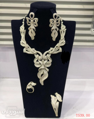 طقم مجوهرات عقد وأسورة وأنسيال وحلق ذات تصميمات مبهرة بجودة مرتفعة