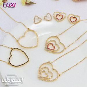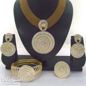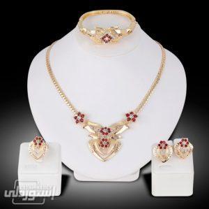 مجموعة مجوهرات عقد وحلق وأسورة وخاتم مطلى بالذهب بتصميمات حديثة بجودة عالية يعطيكى ثقة عالية