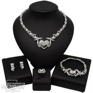 طقم مجوهرات كامل عقد وحلق وبرش وخاتم ذات تصميمات مبهرة تجذب الانتباة وتجعلكى أكثر جمالا