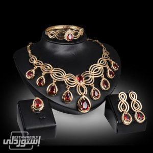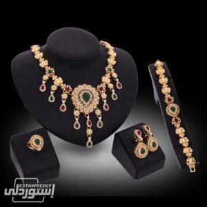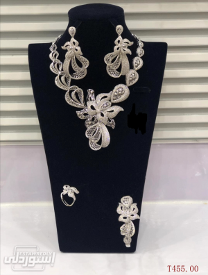 طقم مجوهرات عقد وحلق وخاتم وأنسيال ذات تصميمات عصرية بجودة مرتفعة يعطيكى جاذبية