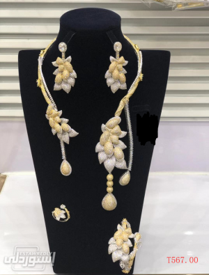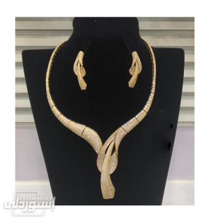 طقم مجوهرات كامل عقد وحلق وبرش وخاتم ذات تصميمات مبهرة تجذب الانتباة وتجعلكى أكثر جمالا