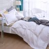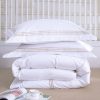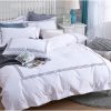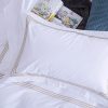 طقم سرير لحاف كبير و  اكياس وسادة ذات تصميمات جذابة قطن 100%.مزخرف بخطوط على الحواف باللون البيج للفنادق والمنازل
