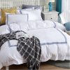 طقم سرير لحاف كبير و  اكياس وسادة ذات تصميمات جذابة قطن 100%.مزخرف بخطوط على الحواف باللون الازرق للفنادق والمنازل