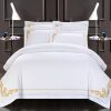 طقم ملاية سرير ولحاف واكياس وسادة مطرزة لفنادق 5 نجوم مطرز على الحواف بالاصفر