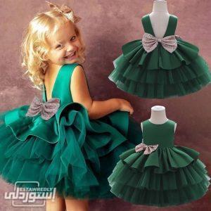 فستان أطفال بدون كم ساحر وقصير يتكون من ثلاث طبقات شفاف من أسفل ومخرز