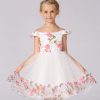فستان أطفال دائرى به ورد من أعلى وأسفل بكرنيش من أسفل