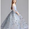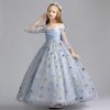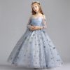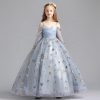 فستان افراح بناتي باكمام شفافة وعريضة ومكشوف الاكتاف