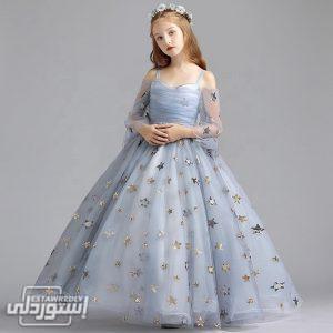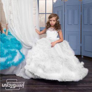 فستان افراح ومناسبات بحملات طويل بشراشيف دائري