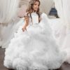 فستان افراح ومناسبات بحملات طويل بشراشيف دائري