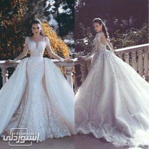 فستان زفاف حورية البحر طويل ومكشوف الزراعين