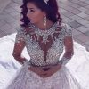 فستان زفاف فاخر وعصري باكمام شفافة مكشوف الظهر.