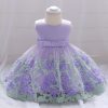 فستان قصير نص كم يحتوى على أشكال الورد من أسفل مبهرة.