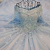 فستان زفاف طويل ازرق فاتح باكمام شفافة مكشوف الاكتاف